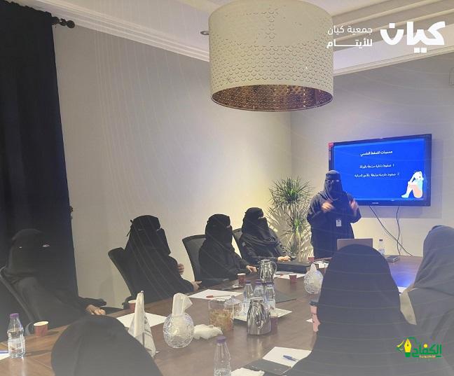 أقام القسم النفسي بجمعية كيان للأيتام ذوي الظروف الخاصة دورة تدريبية لموظفات الجمعية بعنوان “دورة الضغوط النفسية والآلام الجسدية قدمتها الأخصائية النفسية أ/ ريم البليخي من الجمعية، بهدف تحسين الصحة النفسية للموظفات.
