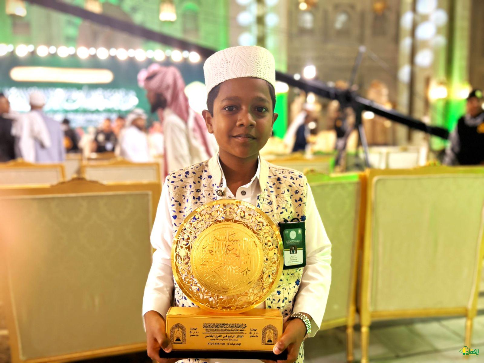طفل من ميانمار توت هيات من أسرة فقيرة يحمل في قلبه كتاب الله بعد فوزه بمسابقة الملك عبدالعزيز الدولية لحفظ القرآن الكريم وتحقيق جائزة المركز الرابع في الفرع الخامس: “سوف أحقق حلم أسرتي بامتلاك منزل يأويهم ويكون سبباً في سعادتهم”.