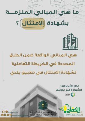 وأوضحت الأمانة أنها تواصل استقبال طلبات إصدار الشهادة للمباني الواقعة ضمن الطرق والشوارع المستهدفة بعد تصحيح وضعها، بهدف ضمان التزام أصحاب تلك المباني التجارية بخلوها من عناصر التشوه البصري، وتوفير بيئة عمرانية صحية ومستدامة، والارتقاء بالمشهد الحضري في العاصمة المقدسة لتحسين جودة الحياة بمختلف المناطق والأحياء.