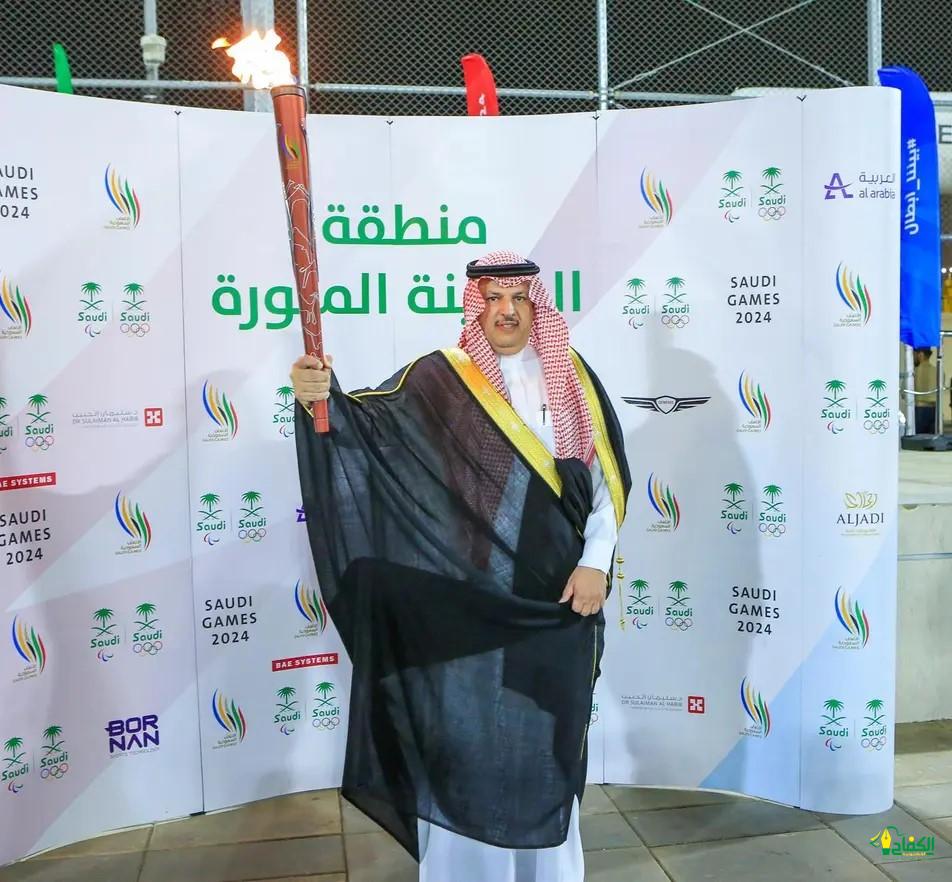 نيابة عن صاحب السمو الملكي الأمير سلمان بن سلطان بن عبدالعزيز أمير منطقة المدينة المنورة، تسلّم وكيل إمارة المنطقة الأستاذ عبدالمحسن بن نايف بن حميد، شعلة النسخة الثالثة لدورة الألعاب السعودية 2024، وذلك في إطار جولتها الترويجية لأكبر حدث رياضي وطني في المملكة، بمقر الجامعة الإسلامية بحضور عدد من الطلاب والرياضيين.