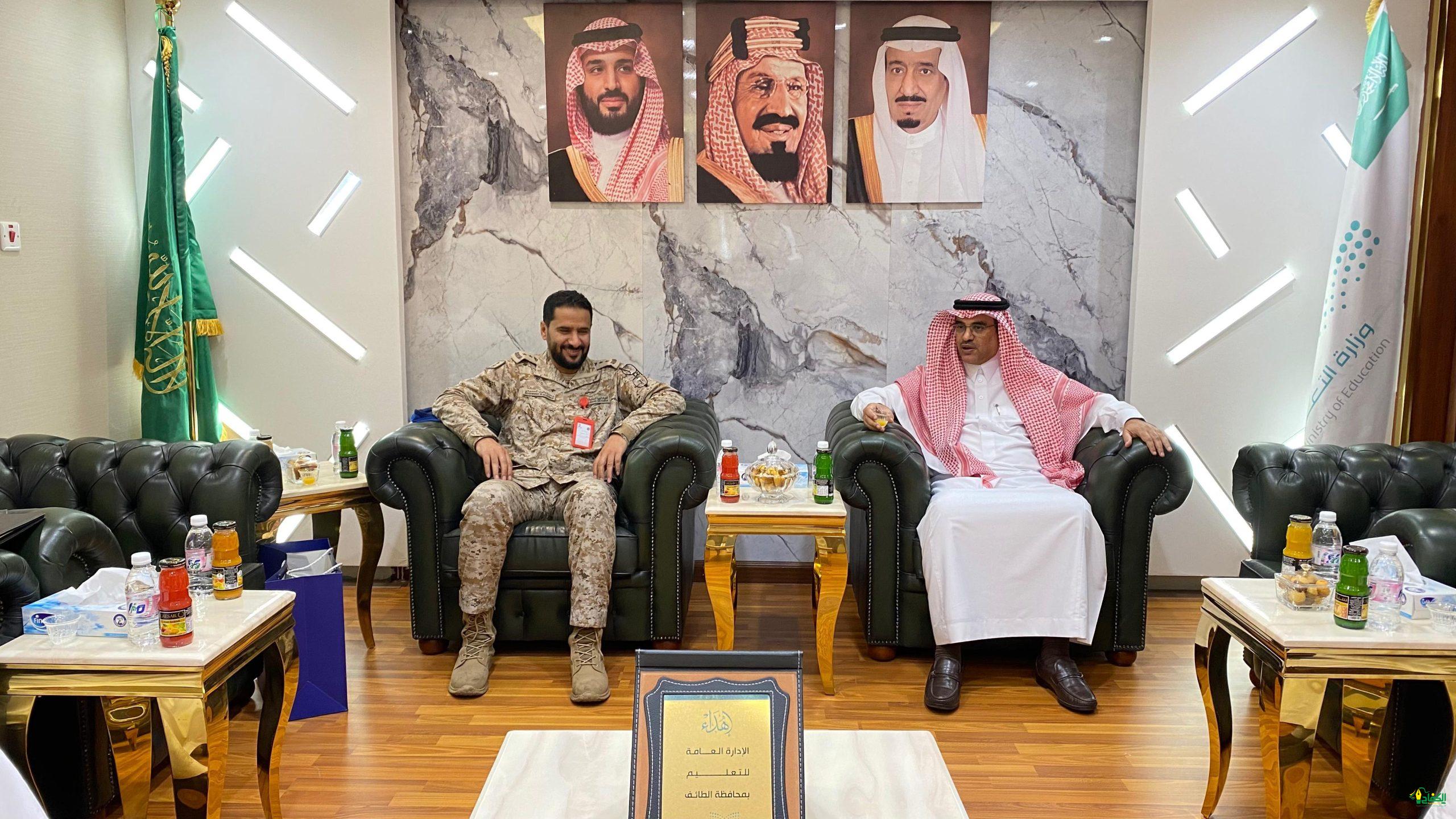 ناقش مدير عام التعليم في محافظة الطائف الدكتور سعيد بن عبدالله الغامدي مع ممثل قاعدة الملك فهد الجوية العقيد محمد مثيب السبيعي النقل التعليمي داخل مدارس القاعدة الجوية وسبل تطوير آلية العمل وتجاوز الصعوبات والمعوقات التي قد تعترض العمل أثناء اليوم الدراسي مع حيال الصعوبات التي تعيق سبل تطوير النقل المدرسي بالقاعدة.
