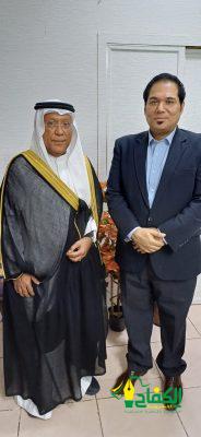 أستقبل القنصل العام لجمهورية باكستان السيد خالد مجيد سعادة المطوف الأستاذ وليد محمد عزيزالرحمن وتم خلال اللقاء بحث ومناقشة عدد من الموضوعات التي تتعلق بضيوف الرحمن والمعتمرين والزوار من جمهورية باكستان الإسلامية.