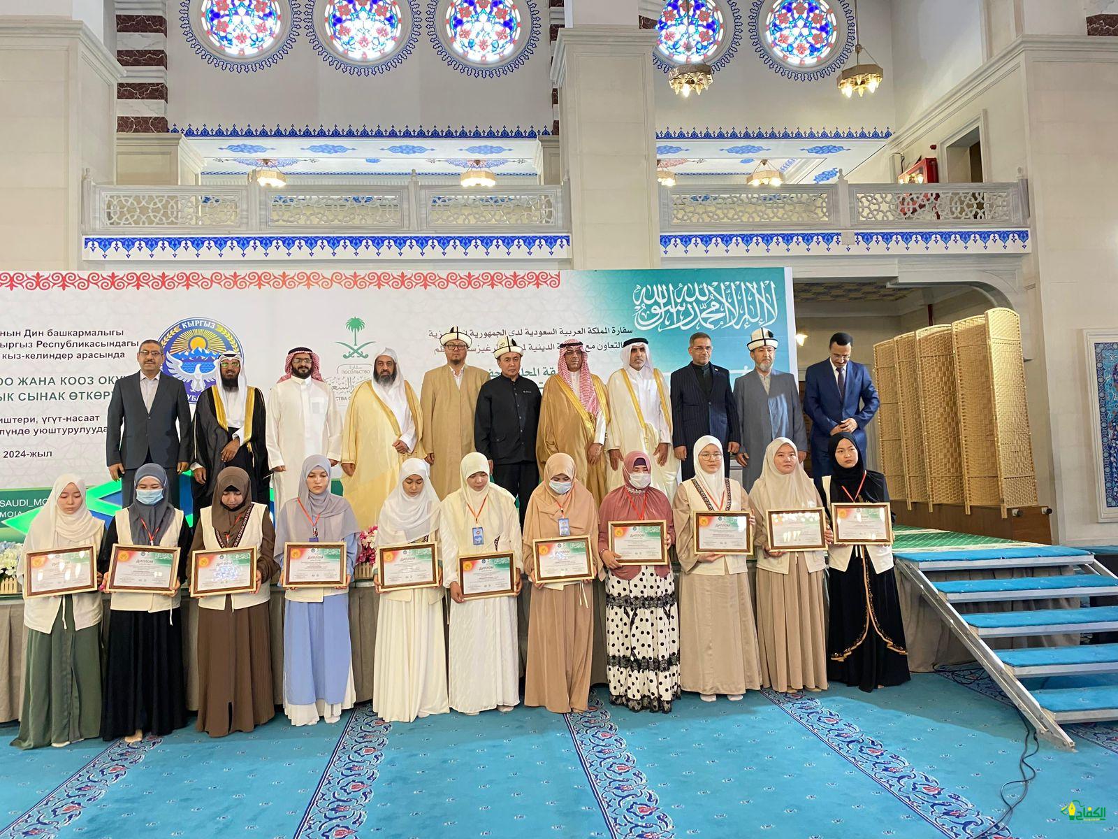 صور من الحفل الختامي لتكريم الفائزات في مسابقة حفظ القرآن الكريم للبنات في قرغيزستان والتي تعد الأكبر على المستوى الوطني نفذتها وزارة الشؤون الإسلامية بالتعاون مع الرئاسة الدينية لمسلمي قرغيزستان وحظيت بمشاركة 270 حافظة للقرآن من مختلف مدن ومحافظات الجمهورية.