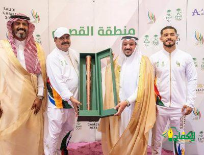 وبدأت جولة الشعلة في منطقة القصيم بزيارة بيت البسام التراثي في أجواء احتفالية، حيث حمل الشعلة بطل الراليات العالمي أحمد الشقاوي لتنتقل للاعب الكاراتيه صالح القوبع الذي حقق فضية أسيا في كازخستان 2019 وحقق برونزية البطولة العربية في تونس 2019 وذهبية دورة الألعاب السعودية 2022.