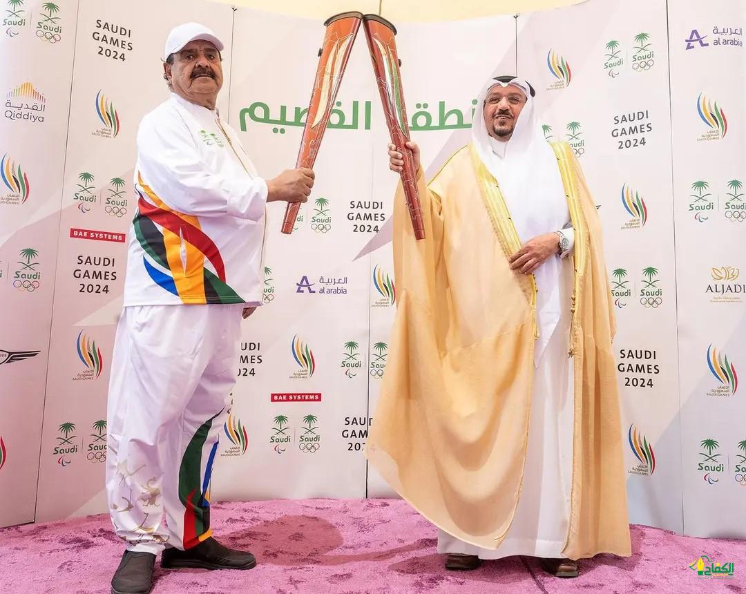 جاء ذلك عقب تسلّم سموّ أمير منطقة القصيم اليوم بمقر مدرسة مجمع الأمير سلطان التعليمي، شعلة دورة الألعاب السعودية الثالثة 2024، من مدير فرع وزارة الرياضة بمنطقة القصيم سابقاً عبدالعزيز السناني، الذي خدم القطاع الرياضي أكثر من 40 عاماً، وشاعر له أكثر من أوبريت في مناسبات وطنية، وتناوب على حمل الشعلة في مدرسة مجمع الأمير سلطان التعليمي لاعب الجودو عبدالإله بن حسين محمد البالي الذي حقق ذهبية بطولة الخليج بالبحرين، وبرونزية بطولة العرب بتونس، وبطل المملكة 2022 إلى 2024، وبرونزية بطولة جيجو الدولية في كوريا، وبرونزية بطولة أفريقيا المفتوحة بتونس، وفضية دورة الألعاب السعودية 2023.