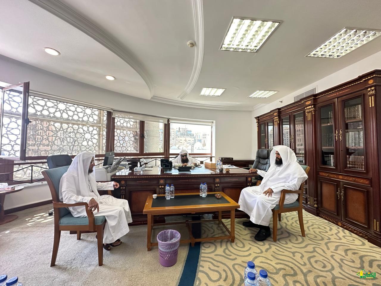 التقى فضيلة مدير عام فرع الرئاسة العامة لهيئة الأمر بالمعروف والنهي عن المنكر بمنطقة المدينة المنورة الشيخ محمد بن علي الشقيفي، فضيلة مفوض الإفتاء بمنطقة المدينة المنورة والمدرس بالمسجد النبوي الشيخ الدكتور صالح بن سعد السحيمي في مكتبه.