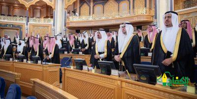 بمشاعر تفيض بالشكر والتقدير ، وفي أجواء يملؤها السرور والبهجة ، وبقلوب تتطلع للإنجاز والنجاح ، يتشرف مجلس الشورى بهذه الرعاية الكريمة حيث تتفضلون ــــ حفظكم الله ــــ نيابة عن خادم الحرمين الشريفين الملك سلمان بن عبدالعزيز آل سعود ــــ حفظه الله ــــ بافتتاح أعمال السنة الأولى من الدورة التاسعة لمجلس الشورى وانطلاق دورة جديدة من عمر هذا المجلس الذي حظي طيلة مسيرته بدعم القيادة الرشيدة وذلك إيماناً بدوره في عملية البناء والتنمية فمرحباً بكم يا صاحب السمو.