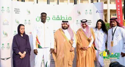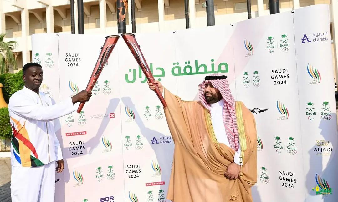 وبدأت جولة الشعلة في منطقة جازان بزيارة وادي لجب في أجواء احتفالية، حيث حملت الشعلة الربّاعة نجود خرمي، الحاصلة على الميدالية البرونزية في دورة الألعاب العربية بالجزائر.