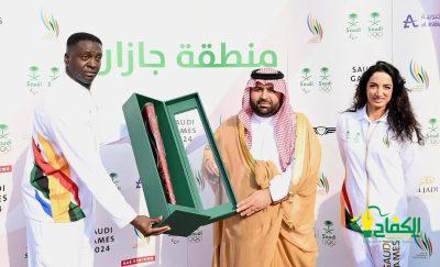 تسلّم صاحب السمو الملكي الأمير محمد بن عبدالعزيز بن محمد بن عبدالعزيز نائب أمير منطقة جازان، شعلة دورة الألعاب السعودية الثالثة 2024، بمدينة الملك فيصل الرياضية، في إطار جولتها الترويجية لأكبر حدث رياضي وطني.