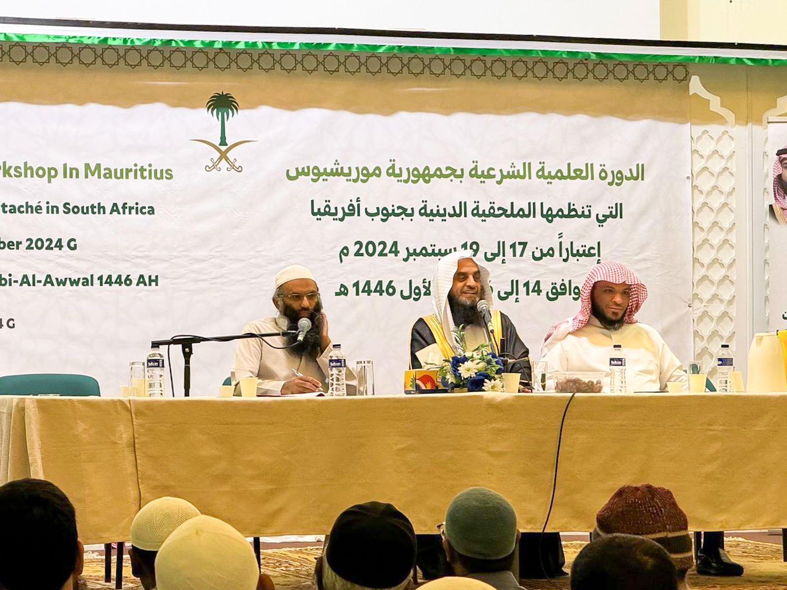 اختتمت وزارة الشؤون الإسلامية والدعوة والإرشاد، ممثلة في الملحقية الدينية بسفارة المملكة في جنوب إفريقيا، اليوم، الدورة العلمية الشرعية بجمهورية موريشيوس والتي استمرت لمدة ثلاثة أيام، واستهدفت الدعاة والأئمة وخريجي الجامعات السعودية وطلاب العلم، استفاد منها ما يقارب ١٥٠٠ مسلم ومسلمة، وذلك بحضور العديد من رؤساء الجمعيات الاسلامية.