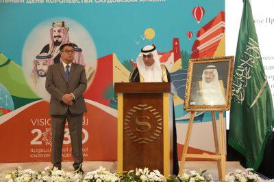 وأوضح سفير خادم الحرمين الشريفين لدى الجمهورية القرغيزية الأستاذ إبراهيم بن راضي الراضي، في كلمة له خلال الحفل؛ أن المملكة تحتفل هذه الأيام بهذه المناسبة الوطنية الغالية بكل فخر واعتزاز تحت شعار “نحلم ونحقق”؛ تأكيدًا على الطموح والعزم على تحقيق الإنجازات في البناء والتنمية.
