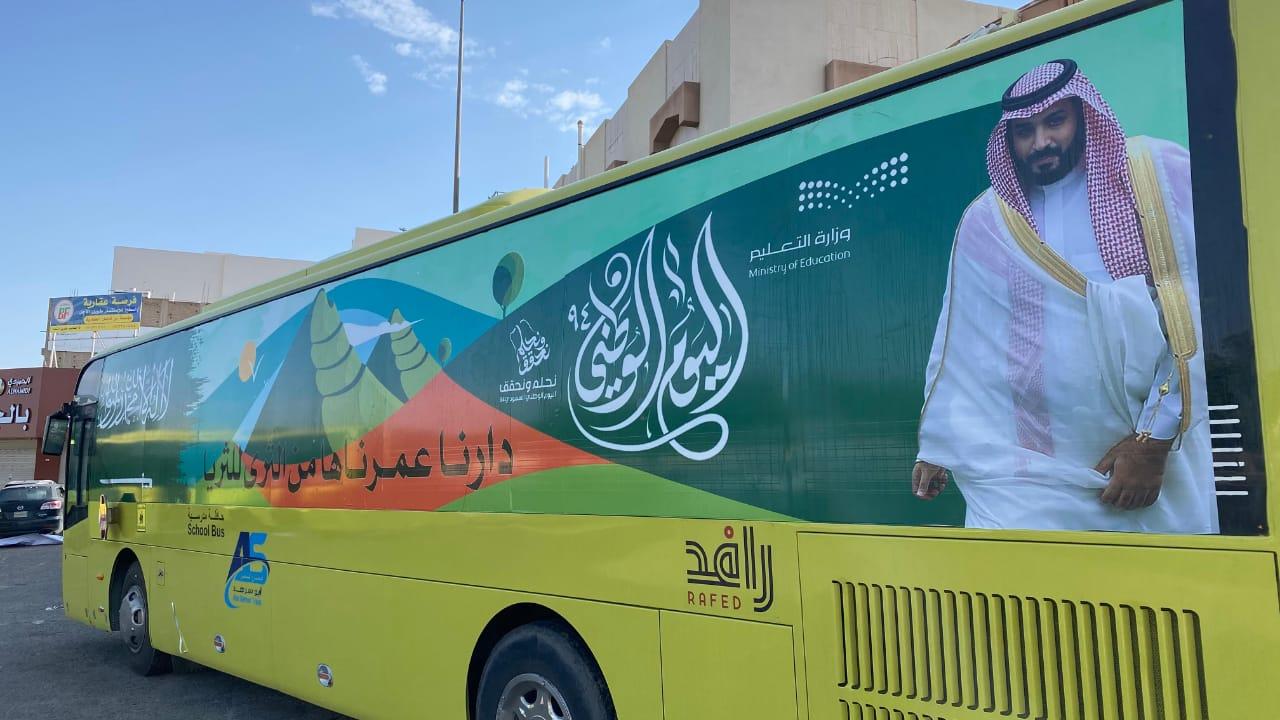 بمعاني الولاء والانتماء، تعليمنا نابضٌ بالوطن . بالإضافة إلى تزيين المباني التعليمية والمدرسية بالأعلام وتركيب التصاميم المعبرة والمتوافقة مع هوية اليوم الوطني، وبث عبارات الحب والولاء للوطن ابتهاجاً بهذه المناسبة الوطنية العزيزة على قلوب الجميع. وتوشحها بألوان الوطن وتزدان باللونين الأخضر والأبيض ابتهاجاً بهذه المناسبة وترسيخ حب الوطن في نفوس الناشئة والمجتمع.