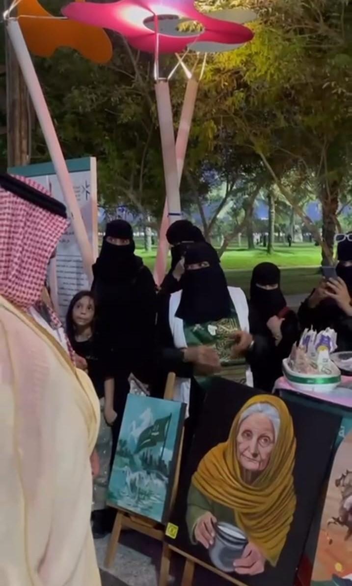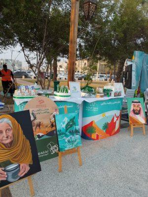 وشهدت المبادرة تنسيق ركن بالتوزيعات الوطنية والضيافة، ورسومات الفنانة التشكيلية المبدعة عنود حمزي التي أضافت للركن جمالًا بريشتها السحرية التي أبهرت المارين على لوحاتها.