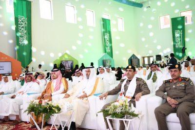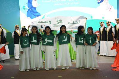 وختم بقوله ” وأبناء هذا الوطن أمانة بين أيديكم وبهم ستستمر هذه المسيرة العظيمة ” وقد بدأ الحفل بالنشيد الوطني فالقرآن الكريم ، تلاها قصيدة شعرية بعنوان ” الحالمون تحققت أحلامهم ألقاها الأستاذ محمد بن بجاد البقمي المعلم بمتوسطة الشيخ عبدالله خياط المتوسطة ” فعرض مرئي بعنوان ” السعودية أرض الحالمين “، تلاه قصيدة شعرية ألقاها الطالب عبدالملك بن ناصر الغامدي من ثانوية أبي أيوب الأنصاري بعنوان “نحلم ونحقق” ثم فقرة تكريم أبناء شهداء الواجب فأعقبها أوبريت ” أنا الوطن ” كلمات الدكتور حامد بن عبدالرحمن الغامدي أداء طلاب مدرسة عبدالرحمن الداخل الثانوية وطالبات المدرسة التاسعة والخمسون الابتدائية.