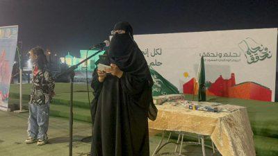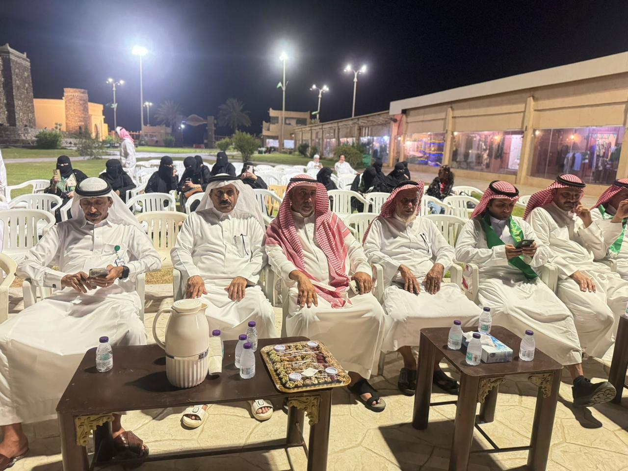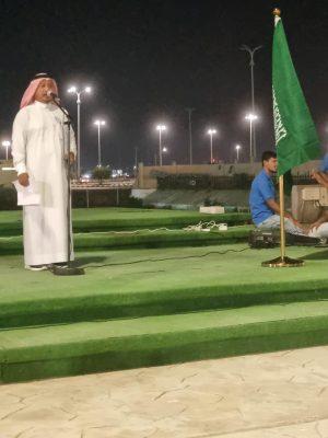 حيث بدأ الحفل بالنشيد الوطني ثم القرآن الكريم تلى ذلك كلمة لقائدة فريق أمل وعمل أ .فازعة الصامطي ثم قدم عرض مرئي عن منجزات أبرز منجزات المملكة خلال السنوات الماضية وما وصلت له من تقدم وحضارة ثم قصيدة شعرية لشاعر الحد الجنوبي الشاعر حسين ازيبي ثم تولت الفقرات ما بين مسابقات وأناشيد وطنية ومشاركات من الحضور ثم قدمت قصيدة وطنية للشاعرة حنان علي بكري.