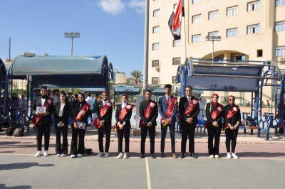 وبدأت المراسم برفع وتحية العلم بالحرم الرئيسي للجامعة، بحضور طلاب من مختلف الكليات وأعضاء أسرة طلاب من أجل مصر وأعضاء اتحاد الطلاب، ورحب رئيس الجامعة في كلمته بالطلاب الجدد والقدامى مقدما التهنئة ببداية العام الدراسي الجديد، داعيا الطلاب إلى العمل للمساهمة في بناء الوطن.