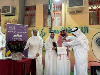 بدوره كرم المساعد للخدمات المساندة المهندس عماد الحربي معلمي مدرسة نعيم بن مسعود الابتدائية وتجول على الفصول الدراسية واطلع على سير العملية التعلمية منوهاً بأثر المعلم ودوره في نفوس طلاب.
