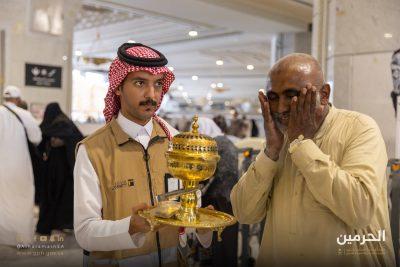بالإضافة إلى توفير المياه وفي إحدى ليالي شهر رمضان المزدحمة، أبلغ أحد الزوار عبر حساب العناية بضيوف الحرمين عن نقص في المياه في إحدى الحافظات عقب صلاة المغرب داخل المسجد الحرام، وتم حل المشكلة خلال 11 دقيقة فقط، حيث تم تعبئة حافظات المياه لتلبية احتياجات الزوار في وقت يشهد كثافة عالية من المصلين والمعتمرين.