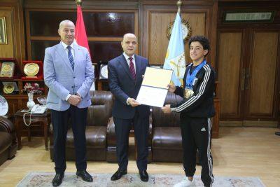 كرم اللواء دكتور علاء عبد المعطي، محافظ كفرالشيخ بجمهورية مصر العربية ، اللاعب سعد حسن وهيب، واللاعبة إهداء محمد موسى لاعبى منتخب مصر، من أبناء المحافظة الحاصلين على 4 ميداليات ذهبية في بطولة العالم للكاراتيه بالبرتغال التي أقيمت خلال الفترة من 7 وحتى 14 أكتوبر الجاري، بمشاركة 32 دولة، برعاية الدكتور أشرف صبحي، وزير الشباب والرياضة.
