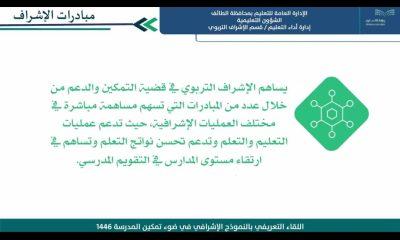 وذلك خلال اللقاء التعريفي بالنموذج الإشرافي في ضوء تمكين المدرسة 1446هـ ، والذي يستهدف المشرفين والمشرفات ، و نفذته إدارة أداء التعليم قسم الإشراف التربوي بحضور المساعد للشؤون التعليمية الاستاذ محمد بن عامر النفيعي والمجتمع التعليمي في الإشراف التربوي . وتضمن اللقاء عدداً من المحاور في الإشراف التربوي ، وذلك بعرض النموذج الإشرافي الإصدار الثاني ومراحل تقديم خدمات التميز المدرسي ، حيث يأتي تطوير النموذج الإشرافي ، تحقيقاً لمستهدفات رؤية المملكة 2030 ، وبرنامج تنمية القدرات البشرية والتوجهات الحديثة للنظم الدراسية المتفوقة.