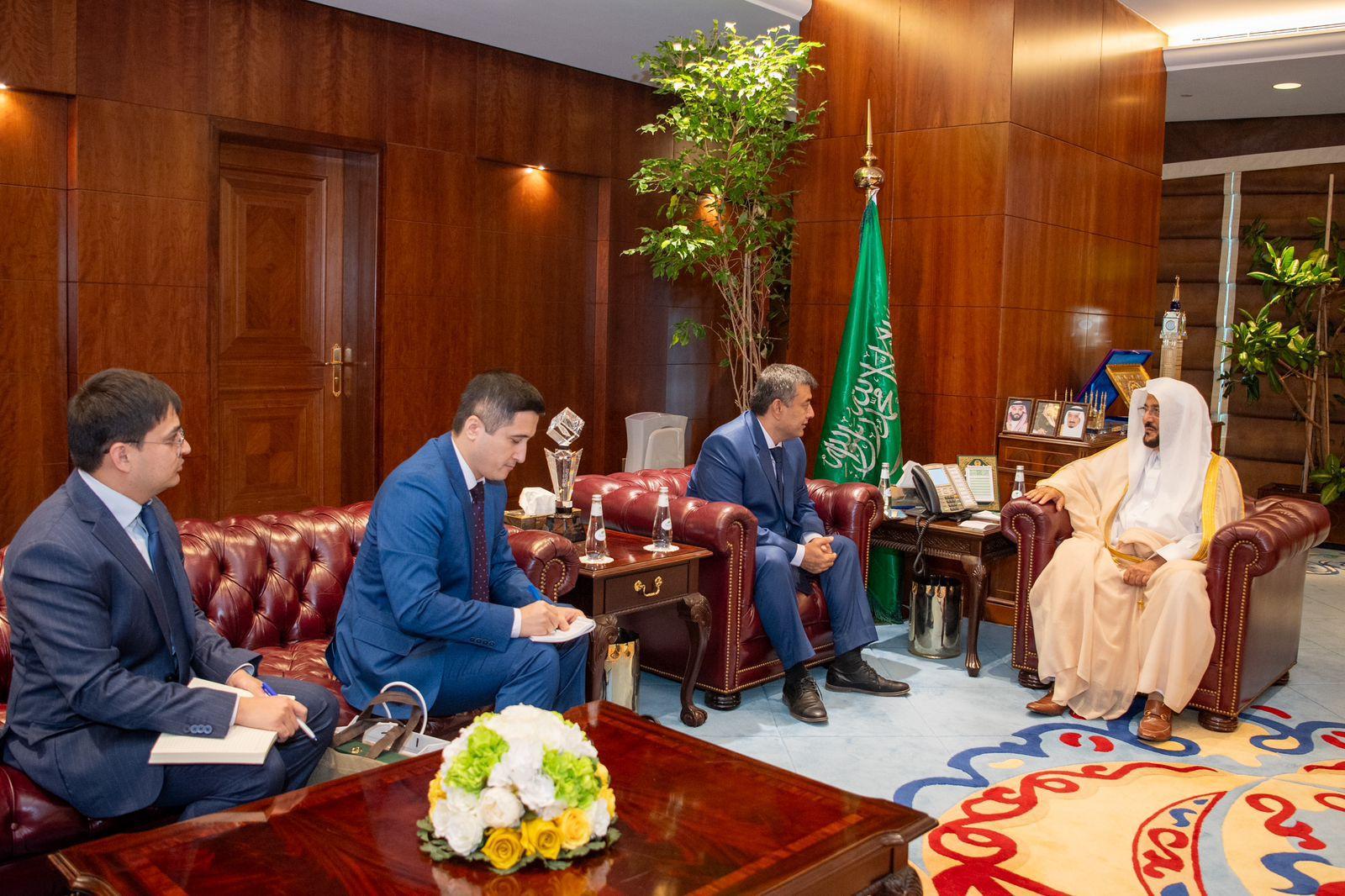 استقبل معالي وزير الشؤون الإسلامية والدعوة والإرشاد الشيخ الدكتور عبداللطيف بن عبدالعزيز آل الشيخ، اليوم الأربعاء السابع والعشرين من شهر ربيع الآخر 1446هـ، في مكتبه بديوان الوزارة في الرياض، سفير جمهورية أوزباكستان لدى المملكة السيد نادرجان تورغونوف.