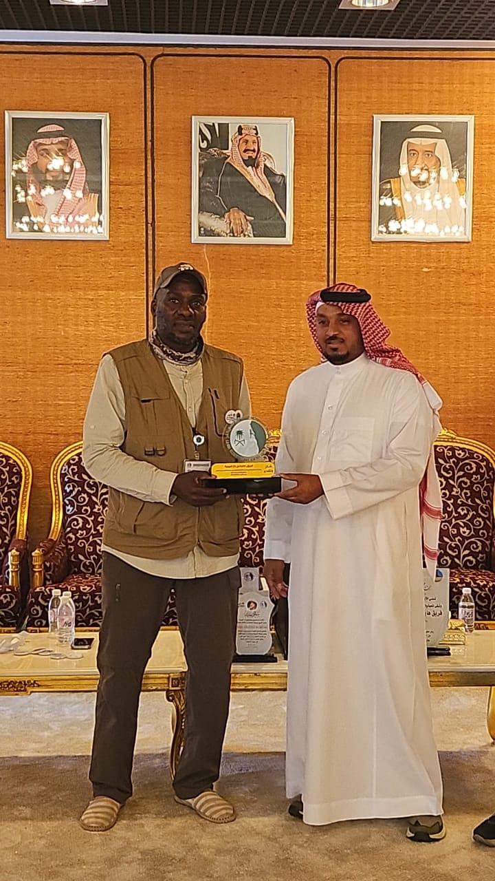 كرم مدير شؤون رياضة الهايكنج بالاتحاد السعودي للتسلق والهايكنج/فارس حجار فريق هايكنج دار الهجرة بمنطقة المدينة المنورة بدرع تذكاري تقديرا لجهود الفريق ومشاركته في رحلة صعود جبل النور بمكة المكرمة تسلم الدرع نيابة عن أعضاء الفريق رئيس مجلس إدارة فريق هايكنج دار الهجرة الكابتن محمد سنوسي الهوساوي.