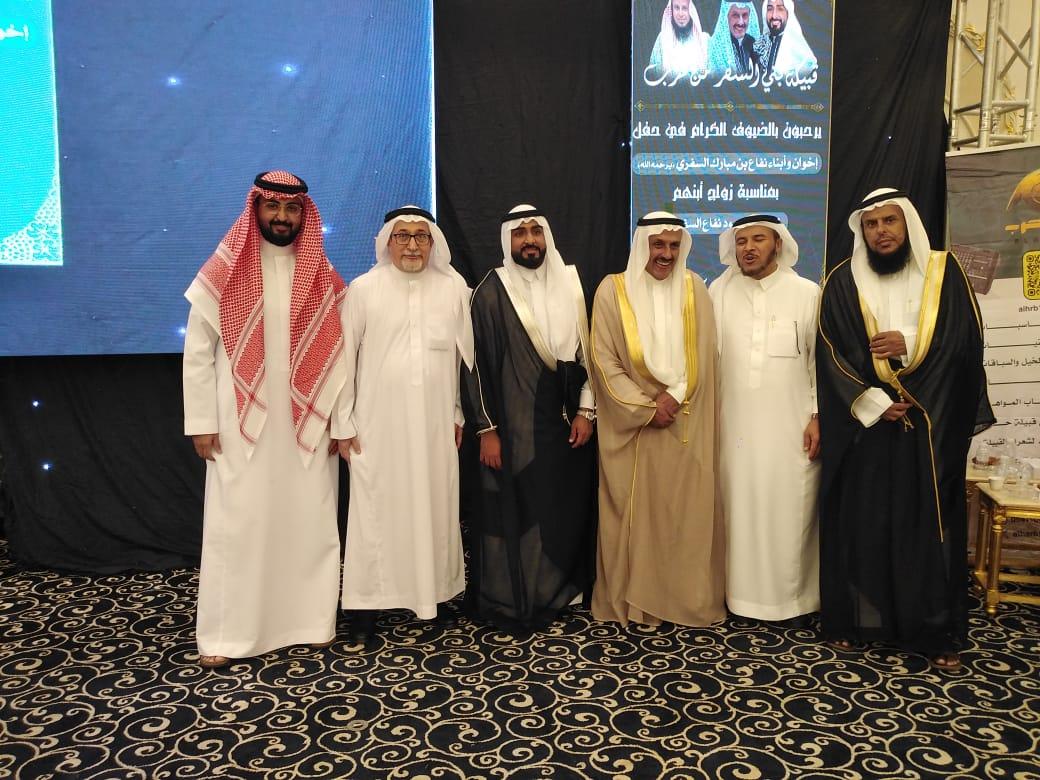 إحتفل سعادة الاستاذ الدكتور سعود نفاع السفري وإخوانه بحفل زفاف نجله الدكتور نايف على ابنة الأستاذ عطية الغامدي – وأقيم الحفل في عسفان بحضور عدد كبير من الأهل والأقارب والأصدقاء وأصحاب السعادة والفضيلة وتخلل الحفل الفلكور والموروث الشعبي والقصائد الشعرية والمشاركة من الحضور – ألف لأهل العروسين.