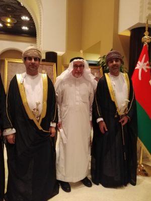 بدا الحفل بالسلام الملكي السعودي والسلام لسلطنة عُمان – بعدها القى سعادة الوزير المفوض القنصل العام لسلطنة عُمان الأستاذ سالم البوسعيدي رحب فيها بالحضور ونوه بعمق العلاقات الأخوية والمتينة التي تربط بين البلدين الشقيقين المملكة العربية السعودية وسلطنة عمان عبر التاريخ.