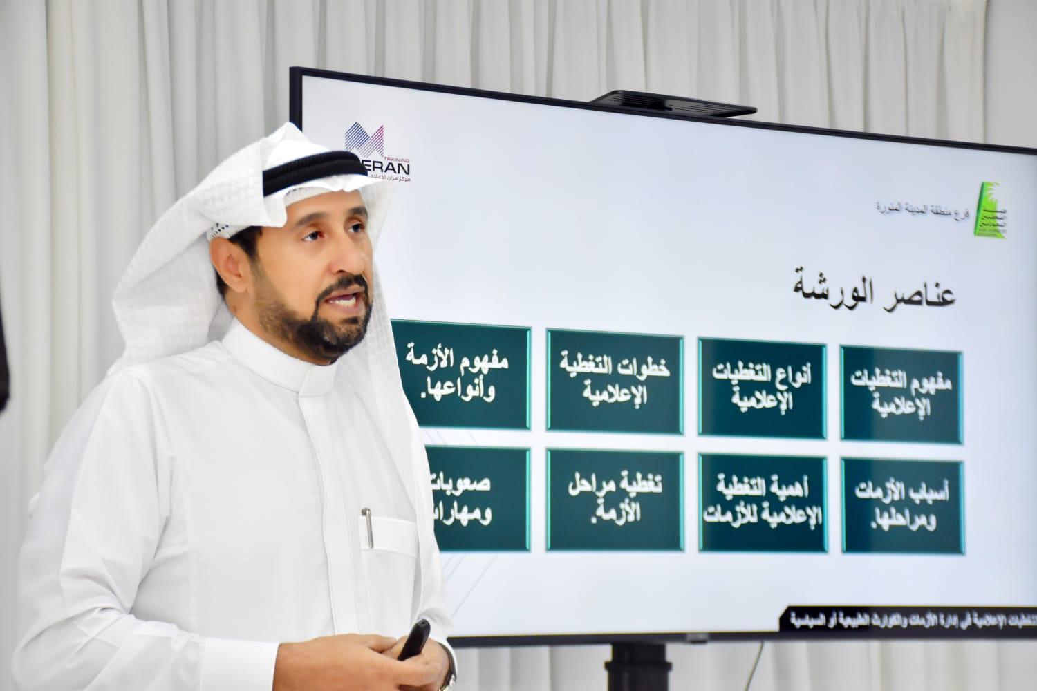 أقام فرع هيئة الصحفيين السعوديين بمنطقة المدينة المنورة ورشة عمل بعنوان (التغطيات الإعلامية في إدارة الأزمات والكوارث الطبيعية أو السياسية) قدمها الدكتور عيسى القايدي.