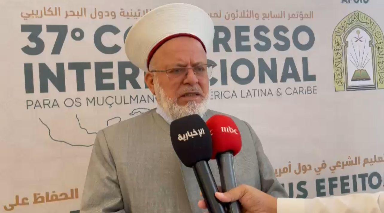 جاء ذلك خلال تصريح له على هامش مشاركته في أعمال مؤتمر مسلمي أمريكا اللاتينية ودول البحر الكاريبي السابع والثلاثين، الذي يُعقد حاليًا في البرازيل برعاية وزارة الشؤون الإسلامية والدعوة والإرشاد بالمملكة.
