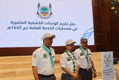 وتضمن الحفل عرضًا مرئيًا بعنوان (قصة النجاح والتميز في الحج)، جسد أبرز ملامح النجاح لمعسكرات الخدمة العامة خلال موسم الحج، وجرى في ختام الاحتفال توزيع جوائز التكريم على الوحدات الكشفية المتميزة من مختلف قطاعات الجمعية بمناطق ومحافظات المملكة.