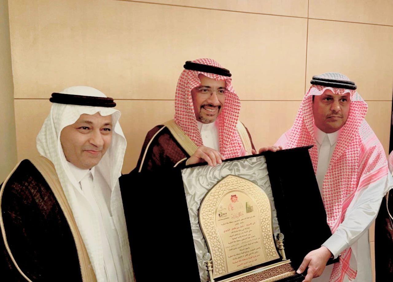 قدم وزير الصناعة والثروة المعدنية الاستاذ بندر بن إبراهيم الخريف درعا تذكاريا تكريميا للاستاذ نايف بن مشعل الزايدي ضمن شركاء النجاح في اللقاء الذي أقامه فرع هيئة الصحفيين السعوديين بمنطقة مكة المكرمة برعاية معاليه مؤخرا والذي كان تحت عنوان الصناعة والثروة المعدنية تعاون وتطوير مستدام بغرفة مكة المكرمة والذي حظي بنجاح باهر وأعرب الزايدي عن اعتزازه بهذا التكريم مثمنا الدور الرفيع الذي يقوم به معاليه في خدمة الصناعة ودفع عجلة التنمية والتطور البناء.