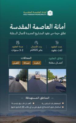 أعلنت أمانة العاصمة المقدسة عن إطلاق حزمة من عقود المشاريع الجديدة لأعمال السفلتة، تشمل تنفيذ، وصيانة، وتأهيل الطرق في مختلف أنحاء مكة، وذلك بهدف تحسين جودة البنية التحتية وتلبية احتياجات التطوير الحضري، وتركزت العقود على تنفيذ أعمال السفلتة في المخططات السكنية، إلى جانب التأهيل لطرق رئيسية، بالإضافة الى استكمال تطوير طرق الخدمة في طريق علي بن أبي طالب (الدائري الرابع) بما يعزز من كفاءة النقل والخدمات المرتبطة به، ومما يعكس التزام الأمانة برفع كفاءة شبكة الطرق وتحسين وضمان سلامة الحركة المرورية.