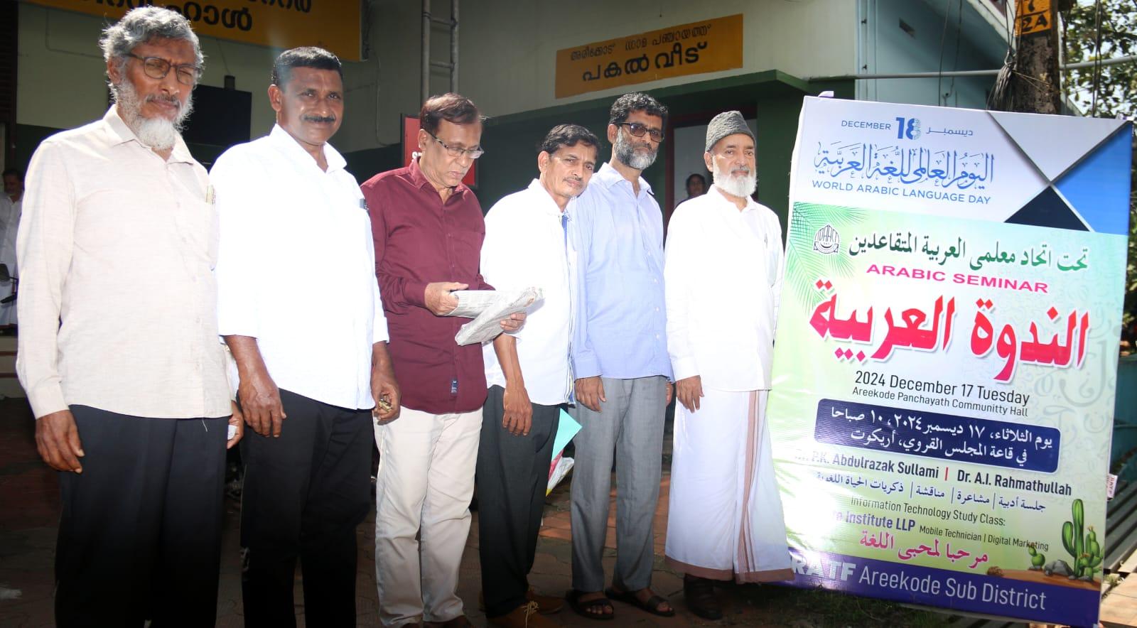 بمناسبة اليوم العالمي للغة العربية ،الذي يصادف اليوم الأربعاء ١٨ ديسمبر , عقد إتحاد مدرسي اللغة العربية في مدينة اريكود كيرالا بالهند ندوة علمية حول تعليم اللغة العربية لغير العرب والتغييرات اللازمة في مناهجه و مقرراته وثمنوا خلال الندوة رائد اللغة العربية في الهند الدكتور حسين أبوبكر كويا مدوور – مدير جامعة مليبار الاسلامية ورئيس تنمية الموارد البشرية في عموم الهند. وحضر الندوة العلمية والحفل التكريمي عدد من كبار أساتذة اللغة العربية من الرجال والنساء الذين لهم خبرات واسعة في ميدان تدريس اللغة العربية.