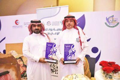 وتميزت الجمعية بتقديم ركن إبداعي احتوى على مجسم لجبل طويق ولوحات فنية وبعض التوزيعات التعريفية للجمعية ، حظيت بإعجاب وكيل الإمارة، ورئيس لجنة تراحم جازان وزوار الركن، كما استمع الجميع لشرح مفصل من قبل الأستاذ عبدالكريم خواجي والأستاذة زهراء النعمي عن المشروع الذي تم بين الجمعية ولجنة تراحم والمنجزات التي تحققت من خلاله وفي نهاية الإحتفال ، تم تكريم جمعية رواد التطوعي للعمل بجازان ممثلة برئيس الجمعية الدكتور علي دبيع.