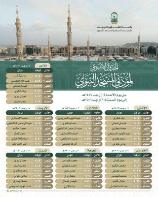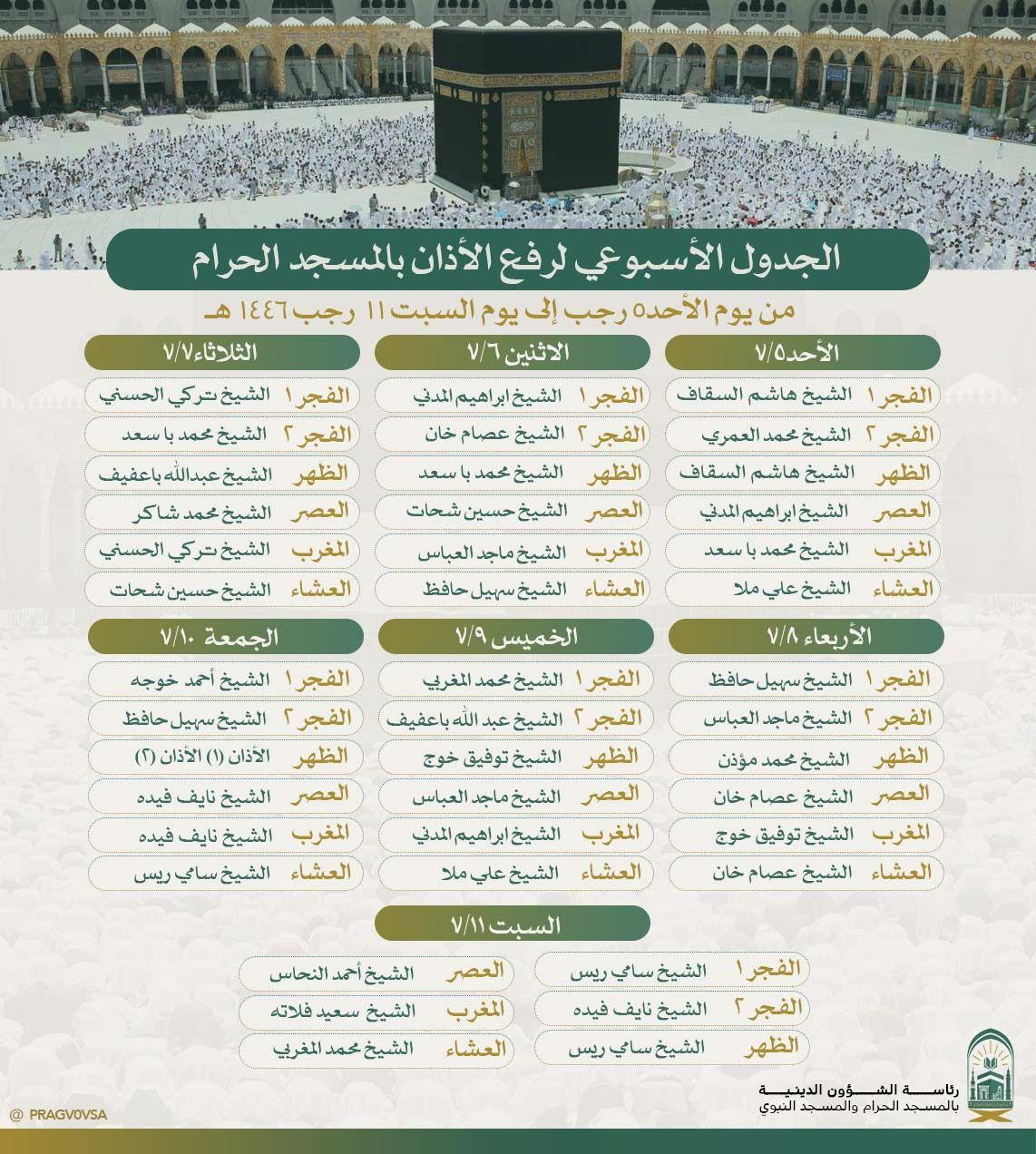 حددت رئاسة الشؤون الدينية بالحرمين الشريفين الجدول الأسبوعي لمؤذنين المسجد الحرام والمسجد النبوي الشريف