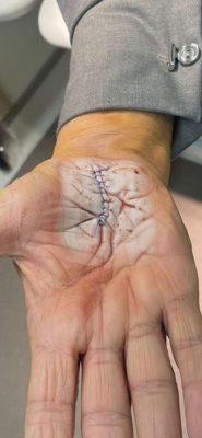 وقد غادر المستشفى على أن يقوم بعد أيام بالمراجعة للمستشفى وأجراء التغير للمرة الثالثة والاطمئنان على نجاح العملية.