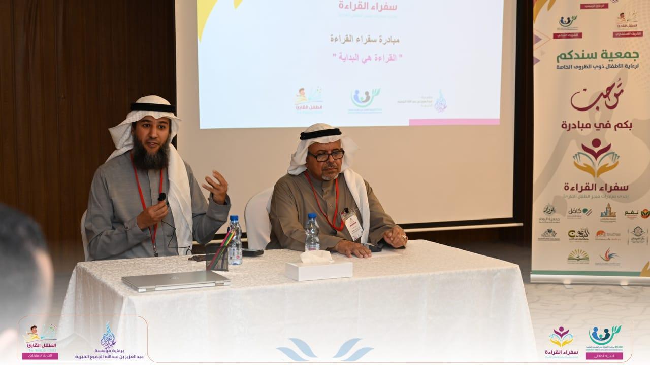 “سفراء وأبطال القراءة”، وأقيم حفل بهذه المناسبة بدا الحفل بالقرآن الكريم فكلمة رئيس مجلس إدارة الجمعية الأستاذ ماجد الجهني قال فيها : يسعدني ويشرفني باسمي وباسم جمعية سندكم لرعاية الأطفال ذوي الظروف الخاصة أن أرحب بكم جميعاً اليوم في افتتاح مبادرة “سفراء وأبطال القراءة”.