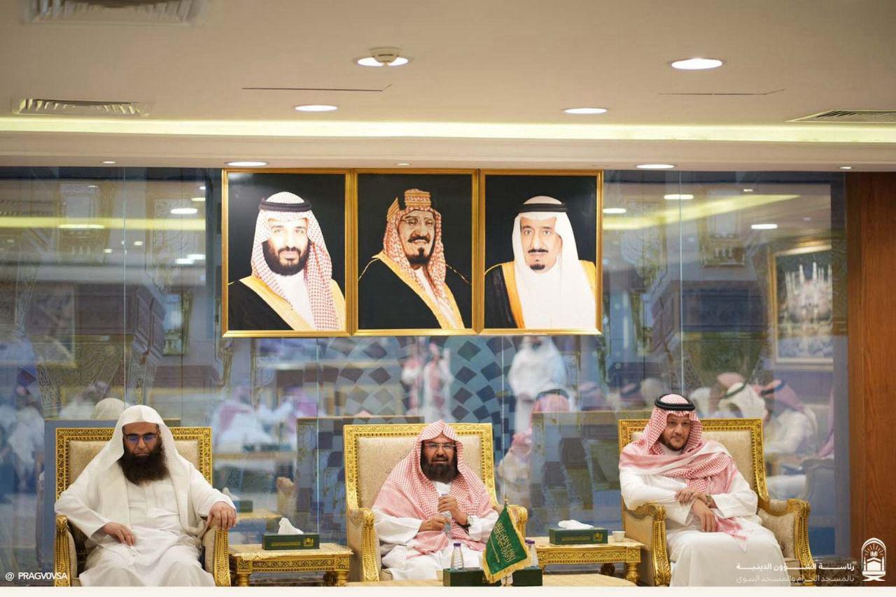 ورفع رئيس الشؤون الدينية بالمسجد الحرام والمسجد النبوي، الشيخ الدكتور عبدالرحمن السديس، في حفل اطلاق الهيكل التنظيمي؛ شكره وتقديره إلى مقام خادم الحرمين الشريفين الملك سلمان بن عبدالعزيز آل سعود، وسمو ولي العهد رئيس مجلس الوزراء الأمير محمد بن سلمان بن عبدالعزيز آل سعود -حفظهما الله-، على دعمهما السخي وحرصهما المستمر على تطوير خدمات الحرمين الشريفين الدينية بما يليق بمكانتهما العظيمة.