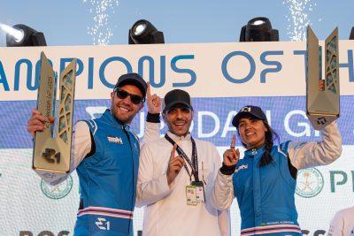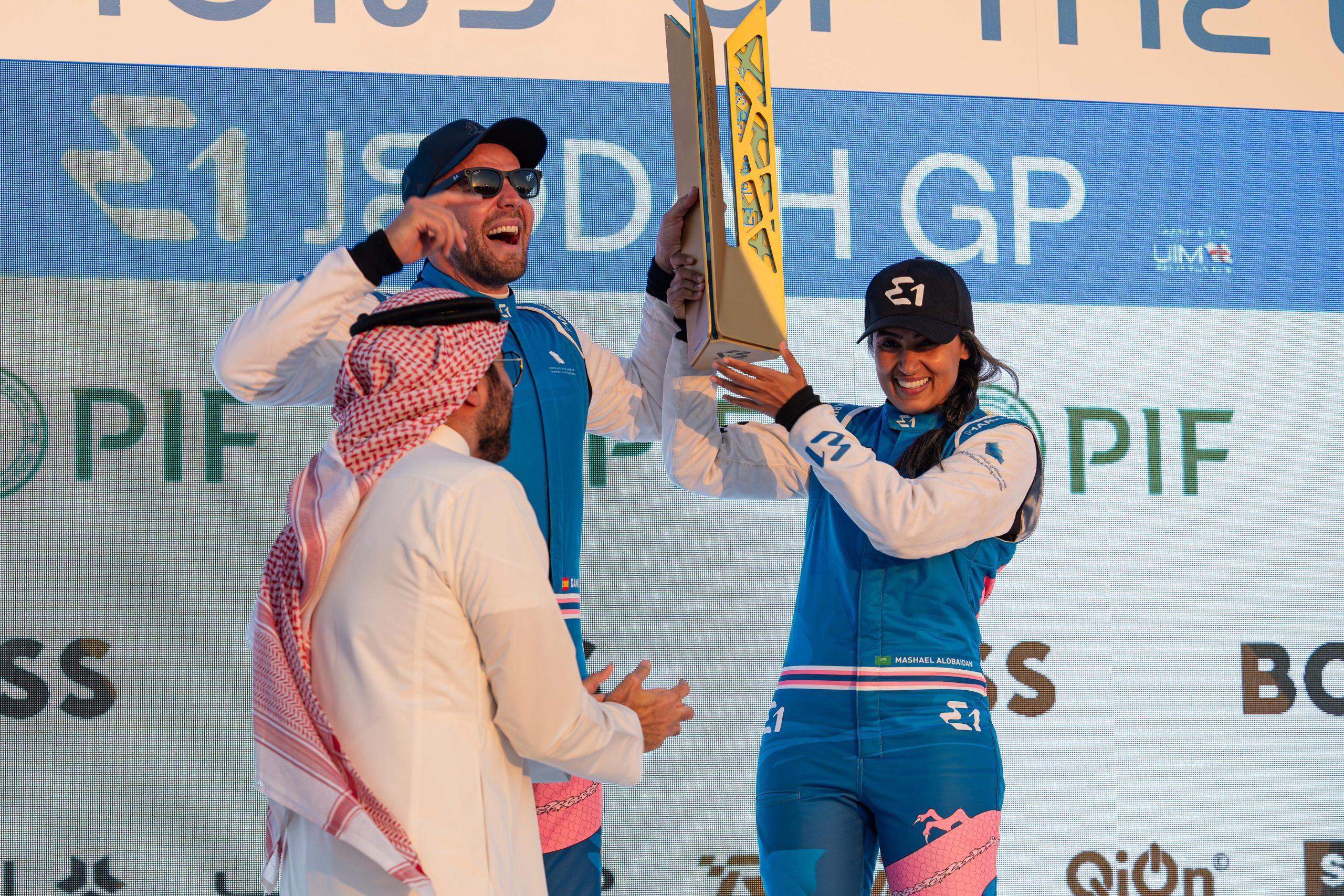 وفي ختام الحدث، توّج معالي نائب وزير الرياضة الأستاذ بدر بن عبدالرحمن القاضي، فريق “أوكي” الذي يملكه ستيف أوكي، بكأس المركز الأول، ويمثله كل من الإسباني داني كلوس والسعودية مشاعل العبيدان، وتوّج صاحب السمو الملكي الأمير سلطان بن فهد بن سلمان آل سعود، رئيس مجلس إدارة الاتحاد السعودي للرياضات البحرية والغوص، فريق رافا بكأس المركز الثاني، والذي يملكه نجم التنس السابق رافاييل نادال، ويمثله الفرنسي توم تشيابي والإسبانية كريس لازاراجا، فيما قدّم الدكتور رافاييل تشيولي؛ رئيس الاتحاد الدولي للزوارق السريعة، كأس المركز الثالث لفريق بلو رايزينج، والذي يملكه نجم الكريكت فيرات كوهلي، ويمثله كل من الأمريكي جون بيترس والجامايكية سارا ميسير.