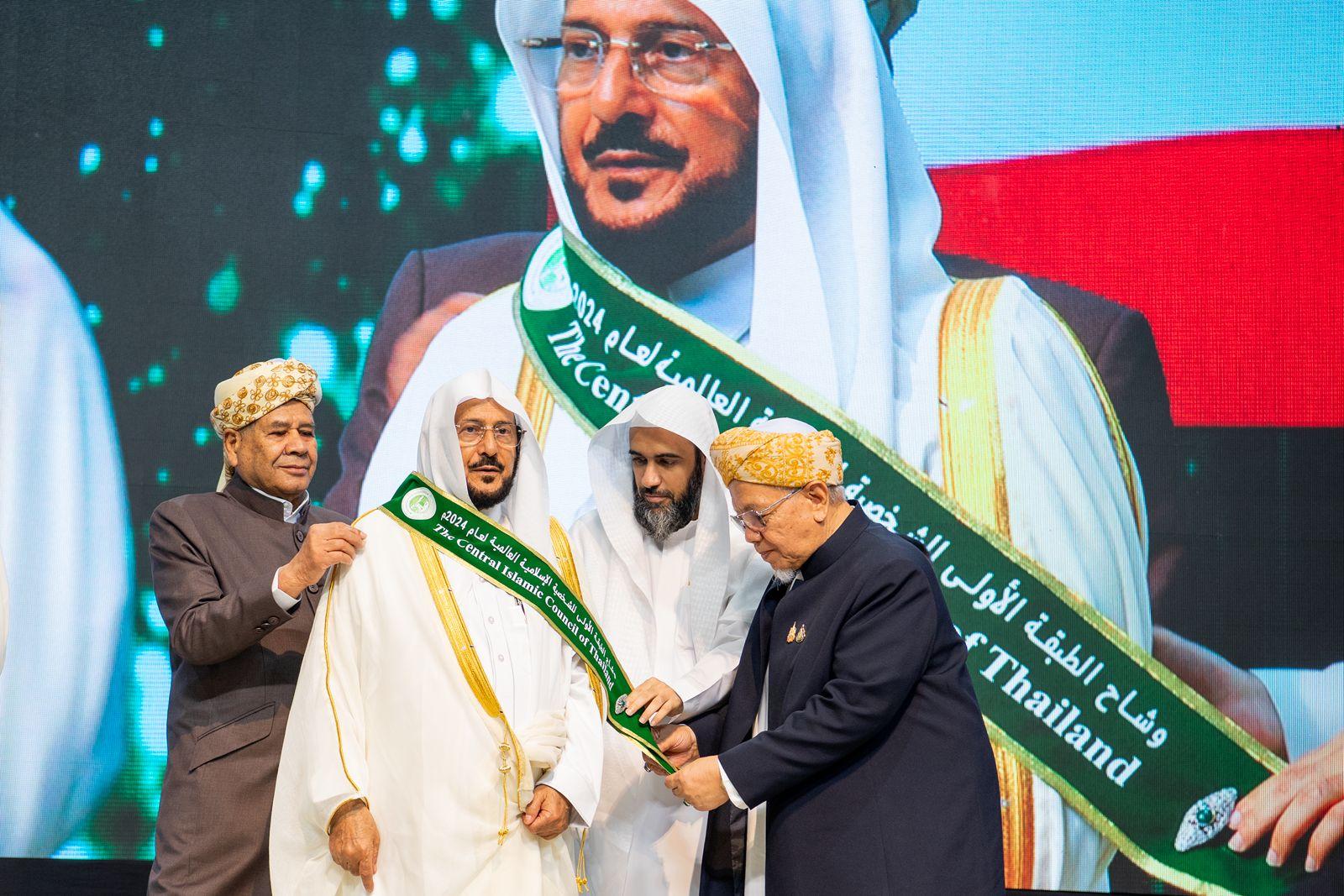لأول مرة في تاريخ مملكة تايلاند شيخ الإسلام رئيس المكتب الرسمي الأعلى لمسلمي تايلاند رئيس المجلس الوطني الإسلامي فضيلة الشيخ أرون بون شوم يمنح معالي وزير الشؤون الإسلامية والدعوة والإرشاد بالمملكة العربية السعودية الشيخ الدكتور عبداللطيف بن عبدالعزيز آل الشيخ وشاح الطبقة الأولى للشخصية الإسلامية العالمية المؤثرة لعام ٢٠٢٤م، كأول شخصية إسلامية على مستوى العالم يتشرف المركز بمنحها، تزامنًا مع الزيارة الرسمية التي يقوم بها حالياً لمملكة تايلند لرئاسة وفد المملكة المشارك في مؤتمر آسيان الثالث الذي تنظمه وزارة الشؤون الإسلامية والدعوة والإرشاد.