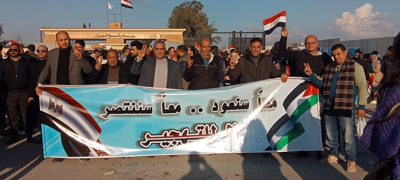 احتشد الآلاف من أهالي محافظة كفر الشيخ ، بجمهورية مصر العربية اليوم الجمعة أمام معبر رفح منذ الصباح الباكر رفضا للتهجير القسري للفلسطينيين ، رافعين الأعلام المصرية، إلى جانب الأعلام الفلسطينية، ولافتات كتب عليها لا للتهجير ، ونؤيد قرارات الرئيس.