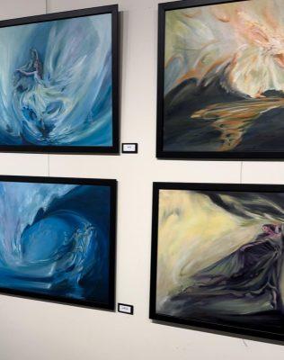 رحلة فنية بين الأصالة والمعاصرة – أستعرضت الفنانة في معرضها مجموعة متنوعة من اللوحات الفنية التي تعكس رؤيتها الفريدة للعالم من حولها وقد استخدمت ألواناً جريئة وجذابة، وخطوطاً انسيابية وأشكالاً مبتكرة، لتخلق عوالم فنية ساحرة تأسر قلوب المشاهدين. وإلى جانب اللوحات، تضمن المعرض أشعاراً كتبتها الفنانة خصيصاً لترافق أعمالها الفنية، مما يضفي على المعرض بعداً إضافياً من الجمال والإبداع. وقد عبرت الفنانة في أعمالها عن جانب إنساني ورومانسي حسي وتجربة عميقة، مما ينم عن ثراء تجربتها الفنية والإنسانية.