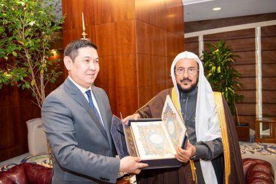 وقد جرى خلال اللقاء تبادل الأحاديث الودية وبحث الموضوعات ذات الاهتمام المشترك، لاسيما ما يتصل بالشأن الإسلامي وثمن السفير الكازاخي السيد ماديار مينيلييكوف الهدية التي قدمها خادم الحرمين الشريفين الملك سلمان بن عبدالعزيز آل سعود ــ يحفظه الله ــ للشعب الكازاخستاني والتي تضمنت تقديم خمسين ألف نسخة من إصدارات مجمع الملك فهد لطباعة المصحف الشريف والتي وصفها بالهدية التي لا تقدر بثمن وهي دلاله على عناية واهتمام المملكة بكتاب الله وترسيخ قيمه التي تدعوا للسلام والمحبة والتضامن لدى المسلمين بالعالم، منوها بدور وزارة الشؤون الإسلامية في نشر الوعي الديني وتعزيز التعاون مع الإدارة الدينية بكازاخستان لنشر قيم الوسطية والاعتدال وخدمة المسلمين القادمين للحج والعمرة في مجال التوعية والإرشاد.