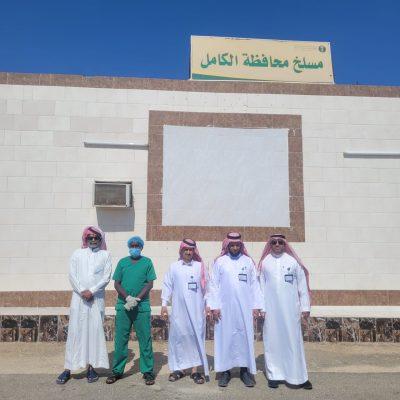 قام مدير مكتب وزارة البيئة والمياه والزراعة بمحافظة الكامل الدكتور محمود سعيد الغامدي برفقة مسؤول الاسواق والمسالخ بالمكتب بزيارة ميدانية لمسلخ محافظة الكامل إستعداداً لشهر رمضان المبارك، للتأكد من سير اعمال الذبح وطرق فحص الحيوانات قبل الذبح وفحص اللحوم بعد الذبح والتأكد من سلامتها، كما تم التنويه بضرورة تعامل المستهلكين مع الأسواق والمسالخ النظامية وتجنب الأسواق والمسالخ العشوائية، لما قد تسببه من مخاطر صحية.