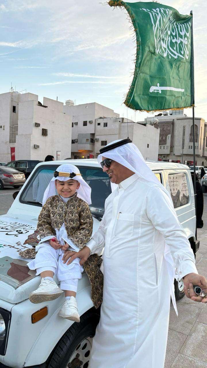عبر المواطن – محمد حامد الينبعاوي من المدينة المنورة عن بالغ سعادته بمناسبة يوم تأسيس المملكة العربية السعودية والذي خرج بسيارته وطفلة لشوارع المدينة لمشاهدة الاحتفالات بهذه المناسبة الوطنية.