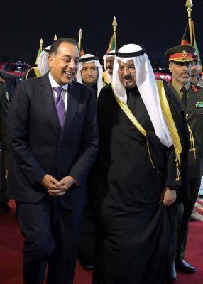 واستقبل الدكتور مصطفى مدبولي، بمطار الكويت الدولي، سمو الشيخ/ أحمد عبدالله الأحمد الصباح، رئيس وزراء دولة الكويت، يرافقه كل من السيد/ شريدة عبدالله سعد المعوشرجي، نائب رئيس مجلس الوزراء الكويتي، وزير الدولة لشئون مجلس الوزراء، رئيس بعثة الشرف، والسيد/ عبدالعزيز دخيل الدخيل، رئيس ديوان رئيس مجلس الوزراء الكويتي، والسيد/ عبدالله علي اليحيا، وزير الخارجية، وبحضور السفير المصرى لدى الكويت، أسامة شلتوت.