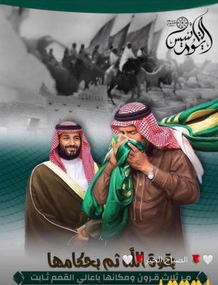 يتجدّد بنا اللّقاء كل عام مع يوم الوطن ، يوم التأسيس ، يوم بَدِيْنا ، اليوم الذي بدأنا نُصافحه ونُعانقه ونُجدّد له فرحتنا بميلاده ، وفخرنا بقيادته ، واعتزازنا بكيانه ، ورفعة مكانه ، وعظمة أركانه ، وعُلو شأنه ، وولاء شعبه ، ووحدة أراضيه ، وكثرة مُحبّيه ومُراديه.