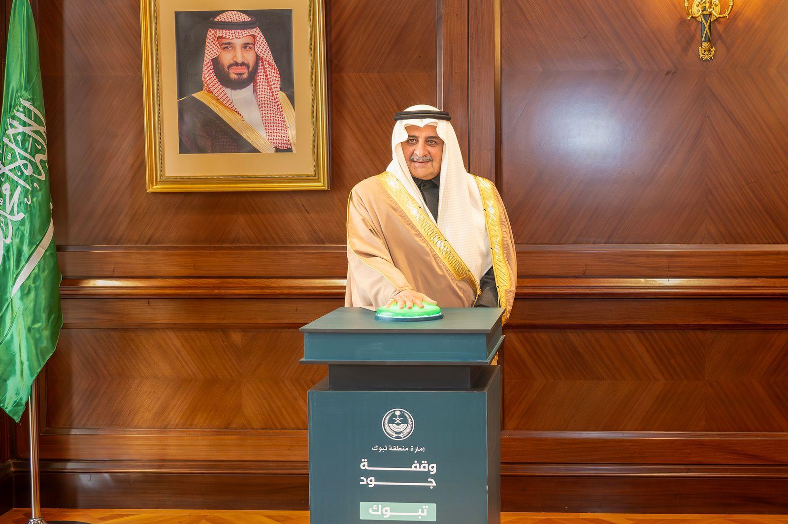 دشّن أمير منطقة تبوك، الأمير فهد بن سلطان بن عبدالعزيز بمكتبه اليوم، مشاركة منطقة تبوك في حملة “جود المناطق 2” التي أطلقتها منصة “جود الإسكان” إحدى مبادرات مؤسسة الإسكان التنموي الأهلية “سكن”، وذلك تحت شعار “وقفة جود تبوك “, وتسعى من خلالها إلى تعزيز الوعي الاجتماعي والمشاركة المجتمعية في دعم الأسر المستحقة من خلال المنصة طيلة شهر رمضان المبارك لعام 1446هـ.