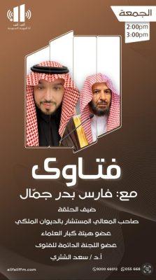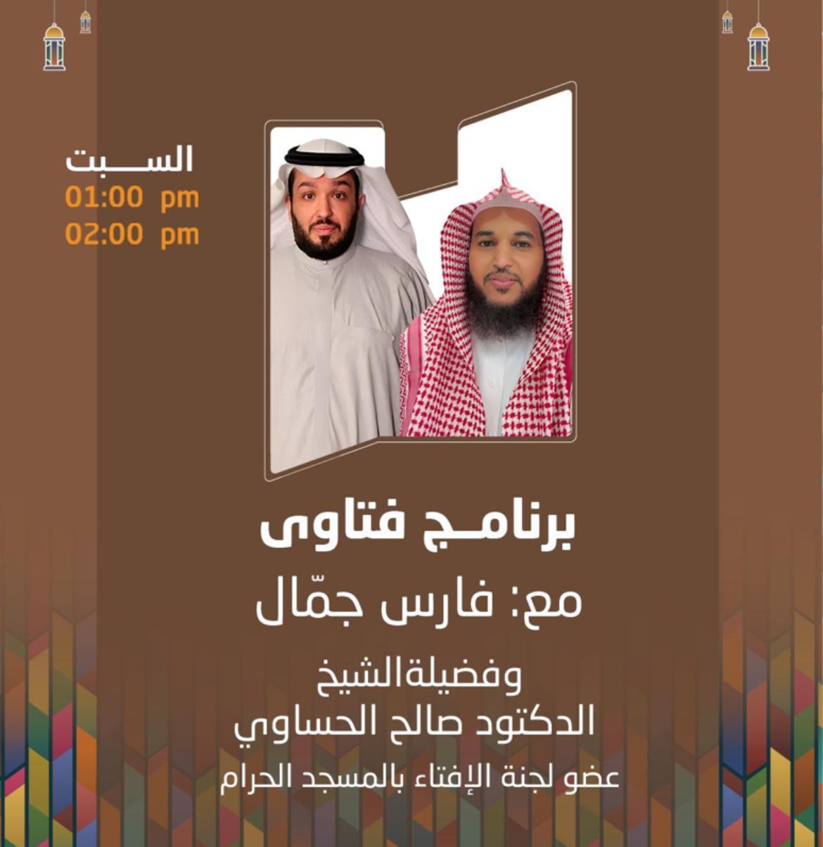 واخيرا برنامج (فتاوى) والذي يتم فيه استضافة عدد من أصحاب المعالي والفضيلة أعضاء هيئة كبار العلماء والمستشارين بالديوان الملكي وأعضاء اللجنة الدائمة للفتوى ومنهم :- معالي الشيخ الاستاذ الدكتور سعد الشتري، ومعالي الشيخ سعد بن تركي الخثلان، ومعالي الشيخ عبد الله الركبان، ومعالي الشيخ الدكتور صالح الحساوي ، وفضيلة الشيخ الدكتور رضوان الرضوان.